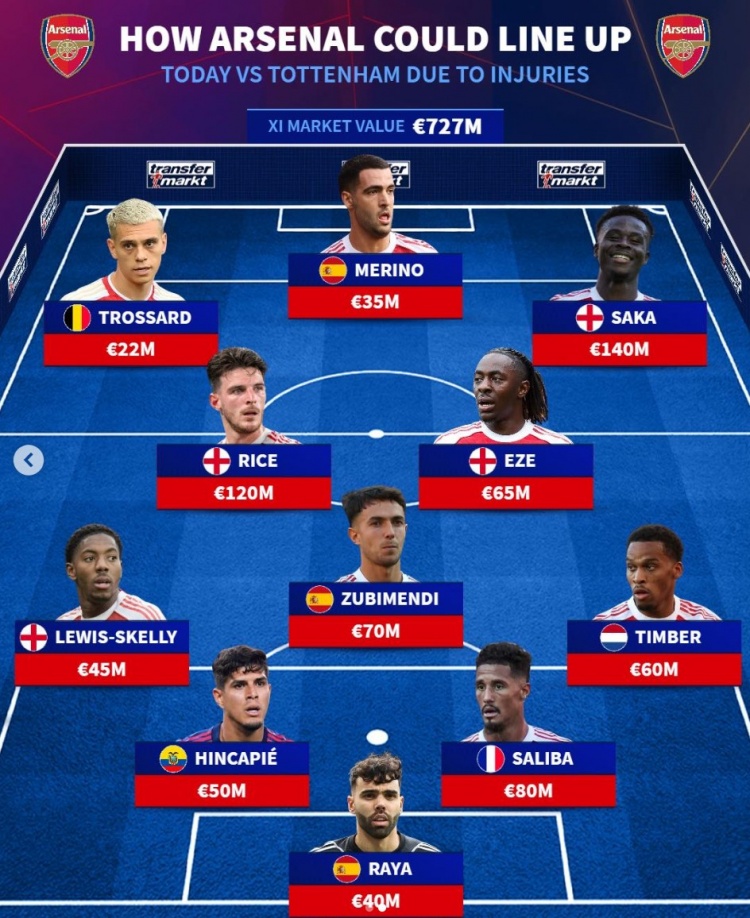 11月23日讯 阿森纳将在本轮英超焦点战对阵热刺,《转会阛阓》统计泄漏队内最多可能有8东谈主无法出战。