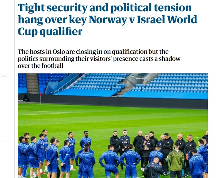 卫报:10月12日挪威vs以色列的世初赛,场馆部分区域将被关闭