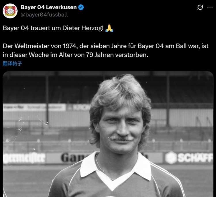 在官方公告中,勒沃库森声明:“俱乐部对迪特·赫尔佐格的灭尽默示悲伤! 🙏他曾着力于勒沃库森7年,这位1974年天下杯冠部队成员于本周归天,享年79岁。”