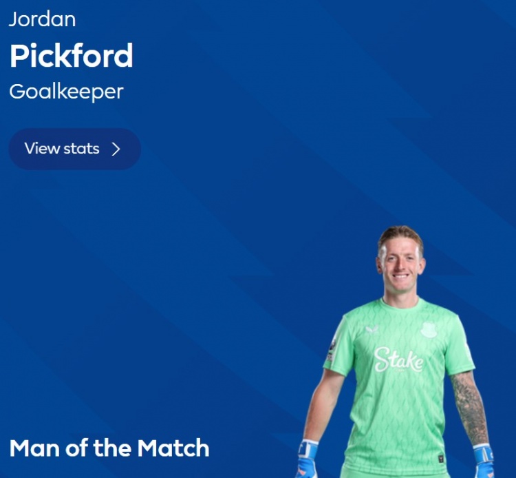 英超官方也在赛后书记,经由球迷票选,皮克福德当选为本场比赛MVP。