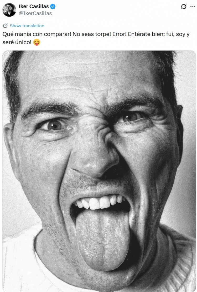 12月1日讯 西班牙名宿卡西利亚斯在社媒晒出一张我方吐舌作念鬼脸的相片,配文写谈:“何须如斯持着于相比!别傻了!搞明晰这极少:我夙昔是、目下是、改日也恒久是唯独无二的!”