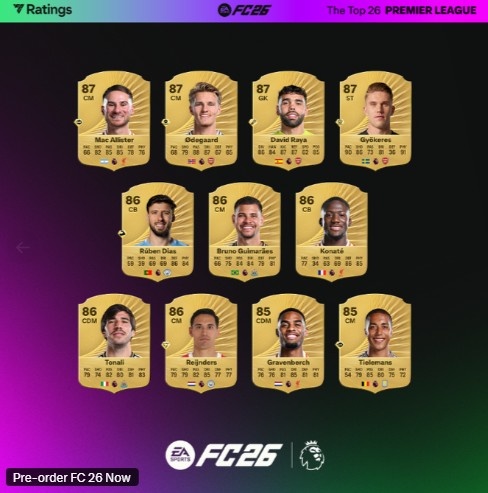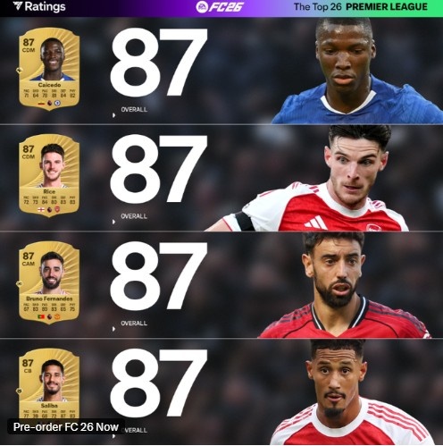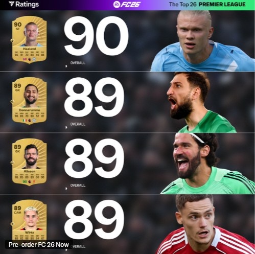 FC26英超评分前TOP26:萨拉赫91居首,罗德里、范迪克、哈兰德90