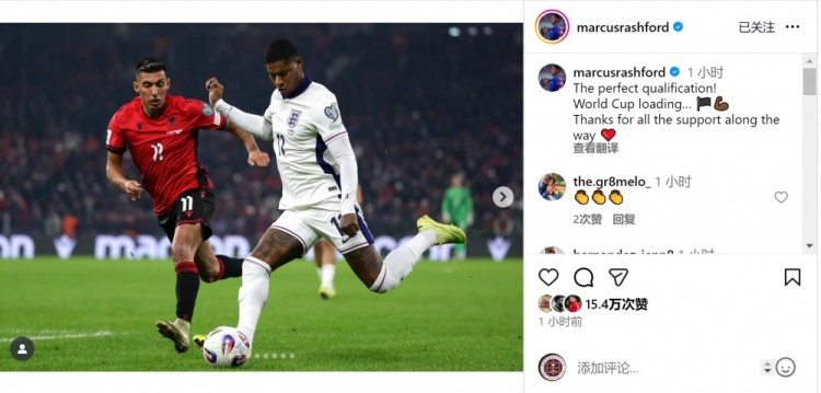 拉什福德社媒晒出比赛像片,并写说念:“圆善的世初赛之旅!寰球杯行将到来,感谢人人一说念以来的支撑。”