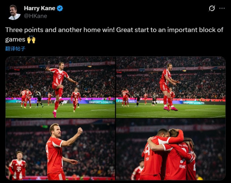 凯恩社媒晒庆祝照: 主场3分得手! 一段弱点赛程迎来好意思满开局!
