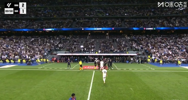 10月27日讯 皇马vs巴萨第90分钟,姆巴佩被贡萨洛换下,全场饱读掌。姆巴佩下场后与贡萨洛以及阿隆索击掌请安。