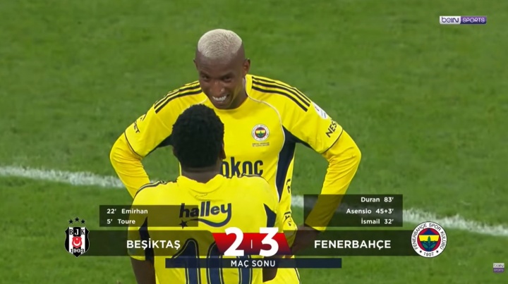 费内巴切由尤克塞克、阿森西奥、杜兰连扳三球,完成大逆转。贝西克塔斯在积分榜上排行第二,落伍榜首加拉塔萨雷4分。